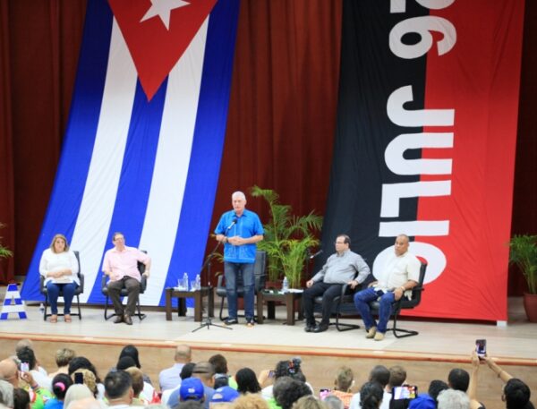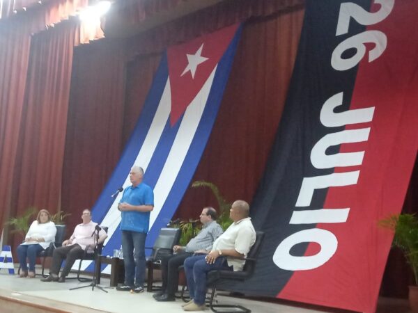 The First Secretary of the Central Committee of the Communist Party of Cuba and President of the Republic, Miguel Díaz-Canel Bermúdez, attended on Thursday afternoon a meeting of solidarity with Cuba, which was held at the University of Medical Sciences in Sancti Spíritus.