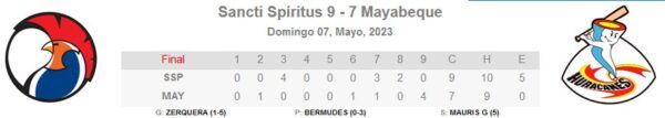 Desde la trinchera opuesta, resultó positiva la actuación de Ariel Zerquera, quien lanzó durante cinco episodios y un tercio, en los que permitió dos carreras, una de ellas inmerecida,suficiente para hacerese de su primer triunfo de la campaña.