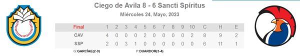 Si bien los espirituanos iniciaron la fecha instalados en el quinto puesto de la tabla de posiciones, los triunfos de Ciego de Ávila con marcadores de ocho carreras por seis en un partido definido en 10 entradas y dos por una en siete capítulos, provocaron un enroque de ambos contendientes, pues ahora los discípulos de Yorelvis Charles los aventajan por media raya con balance de 26 triunfos y 24 descalabros, uno menos que los yayaberos.