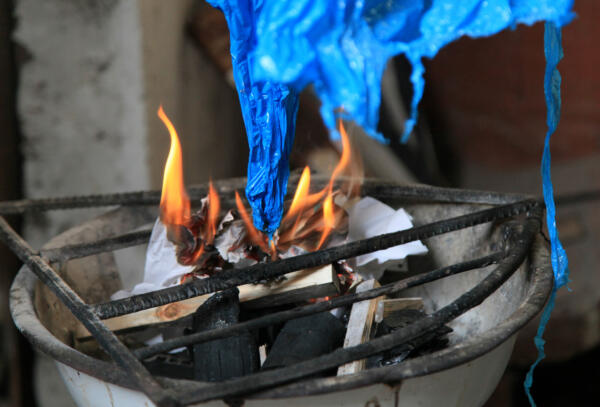 Momentos de recoger el carbón del horno recién quemado.