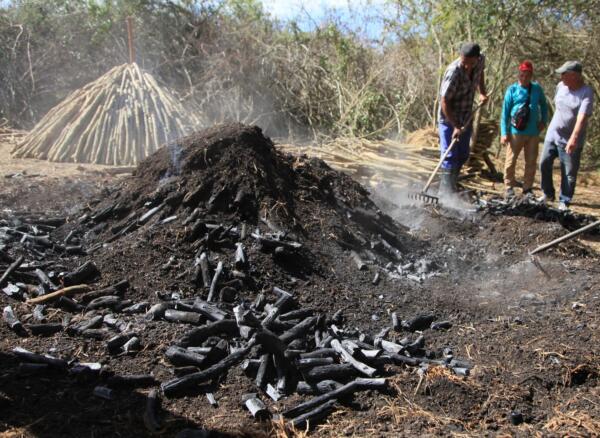 Desde el corazón de un marabuzal, la carbonera cobra vida.