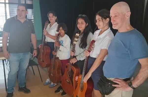 Rodolfo Dal Pane, afiliado a la Asociación de Amistad Italia-Cuba y residente en la ciudad del Yayabo, gestionó personalmente la donación de guitarras entregadas a estudiantes de la Escuela de Arte Ernesto Lecuona.