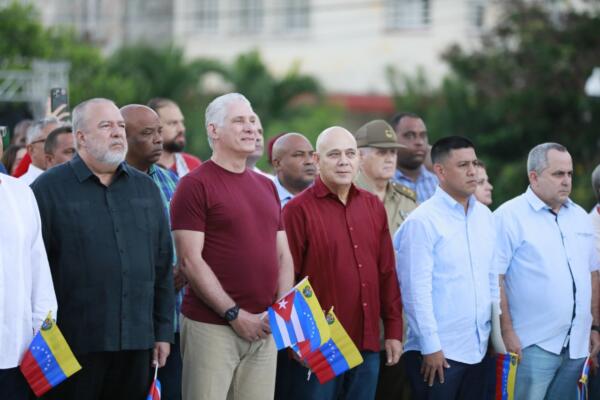 Con una contundente muestra de solidaridad internacionalista, tuvo lugar hoy en La Habana un acto de repudio a la injerencia de los Estados Unidos en los asuntos internos de Venezuela. Presidido por Miguel Díaz-Canel Bermúdez, Primer Secretario del Comité Central del Partido Comunista de Cuba y Presidente de la República, el evento se desarrolló frente a la estatua ecuestre del Libertador Simón Bolívar, en el Vedado capitalino.