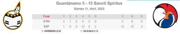 A primera hora de este martes, los Gallos de Sancti Spíritus se impusieron a los Indios de Guantánamo (5×3), con racimo decisivo de cuatro carreras en el segundo episodio, en el que resultó clave el tubey con bases llenas registrado por el antesalista Rodolexis Moreno.