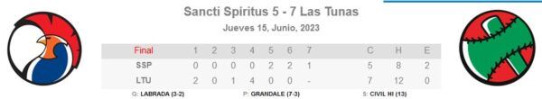 Los Leñadores de Las Tunas derrotaron a primera hora a los Gallos de Sancti Spíritus, con marcador de siete carreras por cinco, en lo que resultaba la segunda victoria sucesiva del duelo particular.