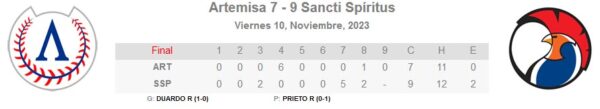 Si bien los artemiseños lograron nivelar el juego en el octavo, los de casa marcaron par de carreras en el cierre de ese capítulo, con batazo clave a la cuenta del refuerzo villaclareño Yuri Fernández, quien se anotó un triple que le sirvió para remolcar una y después anotar otra.