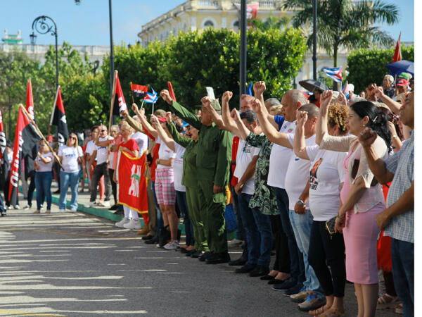 Con los puños fuertes y en alto los espirituanos ratificaron que a Cuba se le ama.