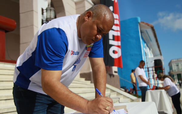 Deivy Pérez Martín, miembro del Comité Central del Partido Comunista de Cuba, plasmó su firma por la Patria.
