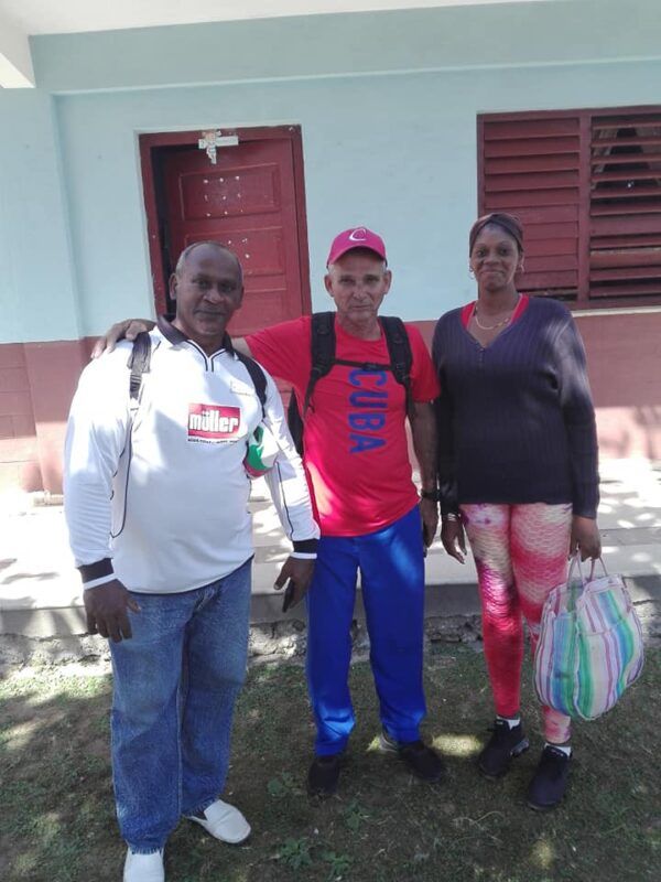 Carlos Bello, comisionado provincial de voleibol junto a los profesores Omar y Lusbet.