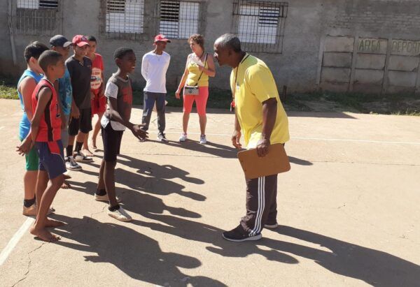 La masificación del voleibol en la Villa Patrimonio de la Humanidad es un reto. Como parte de la visita integral del INDER, Angel Vidal, subdirector provincial de actividades deportivas, analiza in situ con los profesores Omar y Lisbet las proyecciones para convertir a la escuela primaria Mario Guerra Landestoy, ubicada en Casilda, en centro insignia en el despegue del voli en las sureñas arenas.