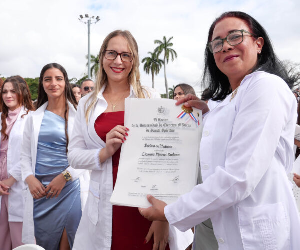 A sus manos llegaron hoy los títulos de graduados, unos en Medicina, otros en la licenciatura de enfermerías, y en otras tecnologías de la salud.