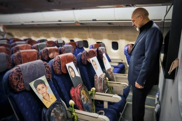 El presidente del Parlamento iraní, Mohammad Bagher Ghalibaf, publicó el viernes una imagen desde el avión que trasladaba a la delegación negociadora de Teherán hacia Islamabad, acompañada de fotografías y pertenencias de niños fallecidos en el ataque contra Minab, junto a un mensaje: “Mis compañeros en este viaje”.