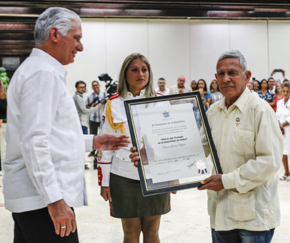 En ese espíritu, se dictaron los Decretos Presidenciales No. 1109 y 1214, que otorgaron el Título Honorífico de Héroe del Trabajo de la República de Cuba a los 18 compañeros y compañeras reconocidos en esta jornada.
