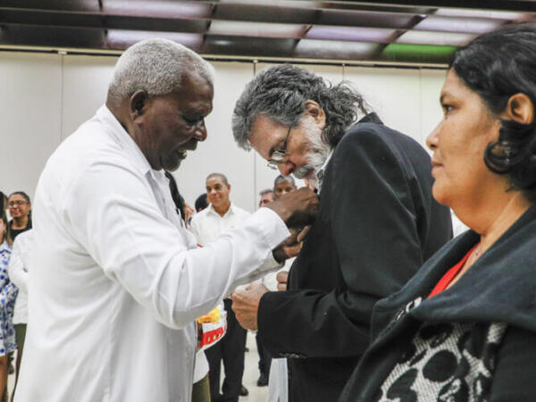 En una ceremonia solemne realizada este miércoles en el Salón de Protocolo de El Laguito, fueron condecorados 18 hombres y mujeres con el Título Honorífico de Héroe y Heroína del Trabajo de la República de Cuba, la más alta distinción que otorga el país a quienes acumulan méritos excepcionales en la producción, los servicios, la ciencia, la docencia, la cultura y otros sectores estratégicos para la nación.