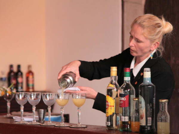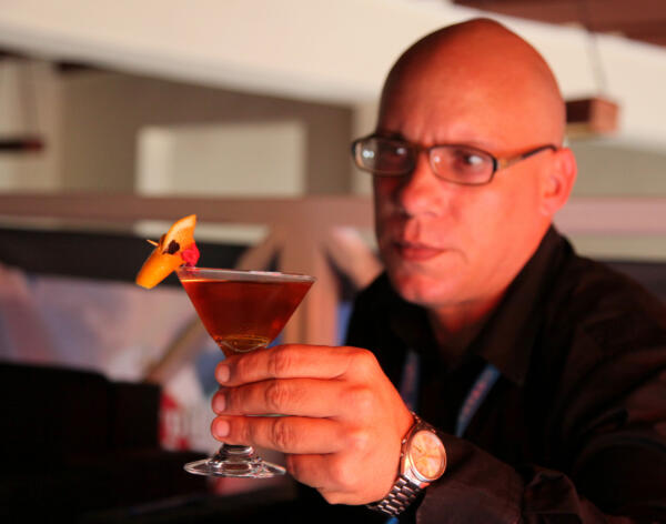 Silencio, concentración, hielo, ron Habana Club, siropes, extractos con sabor a frutas, mezclas.
