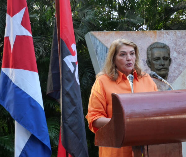 Deivy Pérez Martín, miembro del Comité Central del Partido Comunista de Cuba y su Primera Secretaria en la provincia, durante su intervención en la conmemoración.