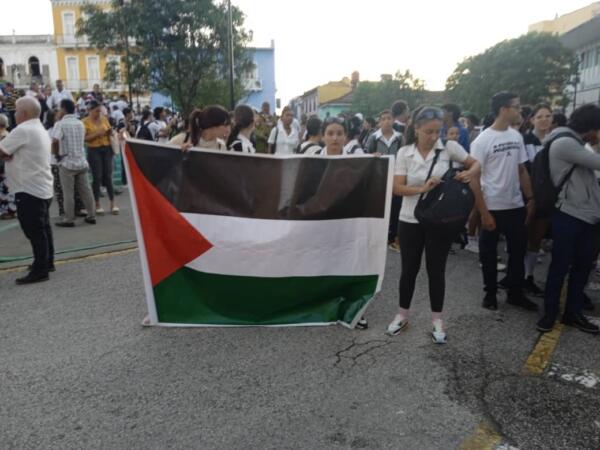Estudiantes presentes para apoyar la causa en favor de la libertad del hermano pueblo palestino. Foto: Cristóbal Álamo