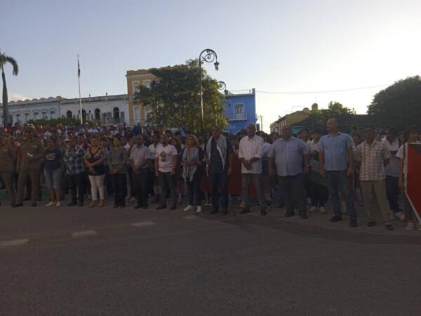 Autoridades de la provincia, la primera secretaria del Comité Provincial del Partido Comunista de Cuba, Deivis Pérez Martín, el gobernador de Sancti Spíritus, Alexis Lorente Jiménez y representantes de otras organizaciones políticas y de masas presidieron la tribuna abierta, que como en todo el país, se convirtió en un acto de condena y solidaridad con la causa palestina, así como de repudio a la complicidad del imperialismo estadounidense que sostiene la agresión.
