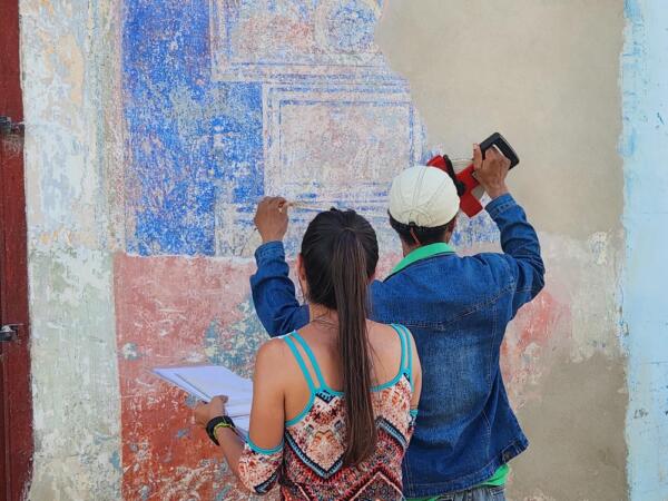 «Ha sido muy interesante porque la pintura mural, que es lo que estamos trabajando fundamentalmente en la fachada, destaca una de las características más importantes que es la pintura azul antigua de la ciudad de finales del XVIII, principios del siglo XIX, pero hay unos cuadros o unos rectángulos de colores blancos que se superponen unos encima de los otros», asegura Orlando Álvarez de la Paz, especialista principal del Gabinete de Arqueología Manuel Romero Falcó.